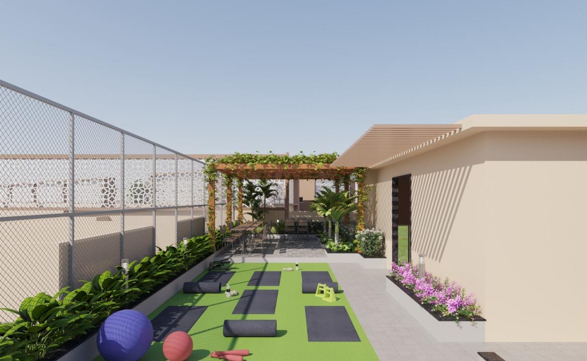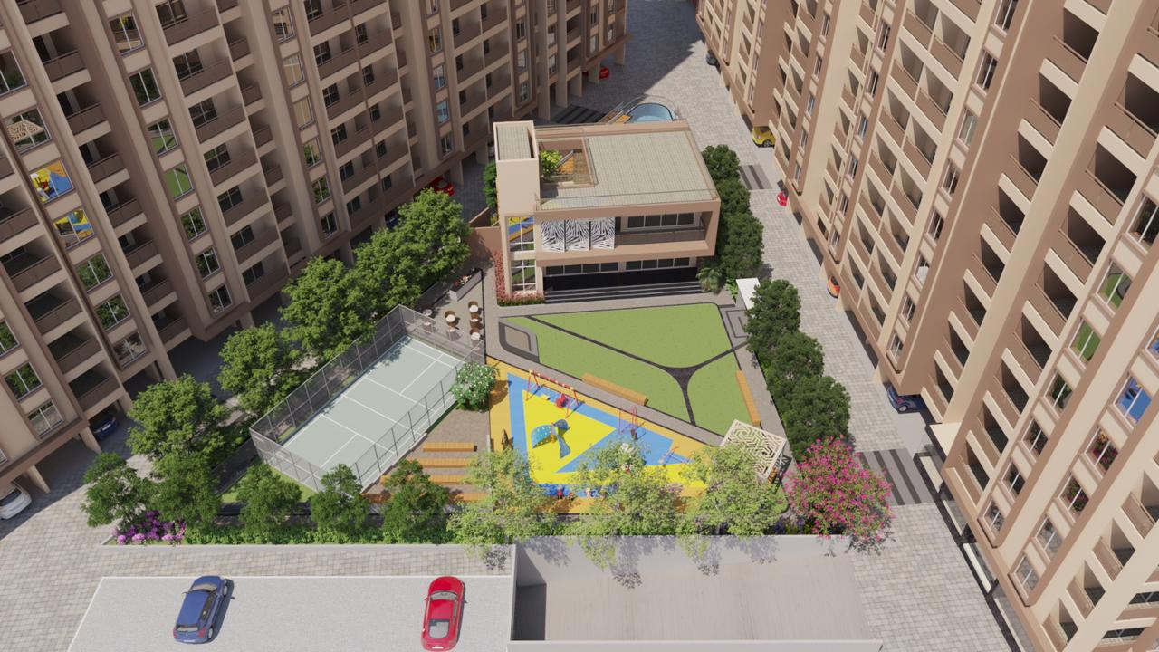 🌳 Ground Amenities – Landscape Garden, Amphitheatre, Multi-Game Court, & Kids’ Play Area!