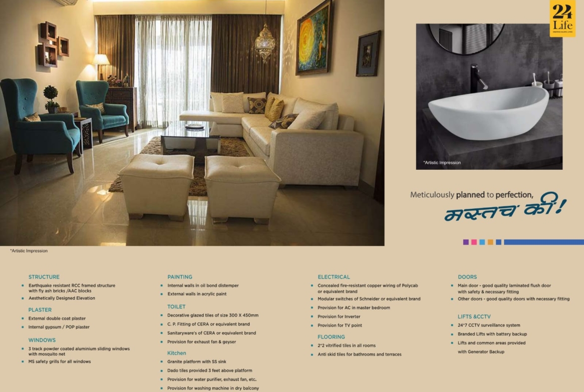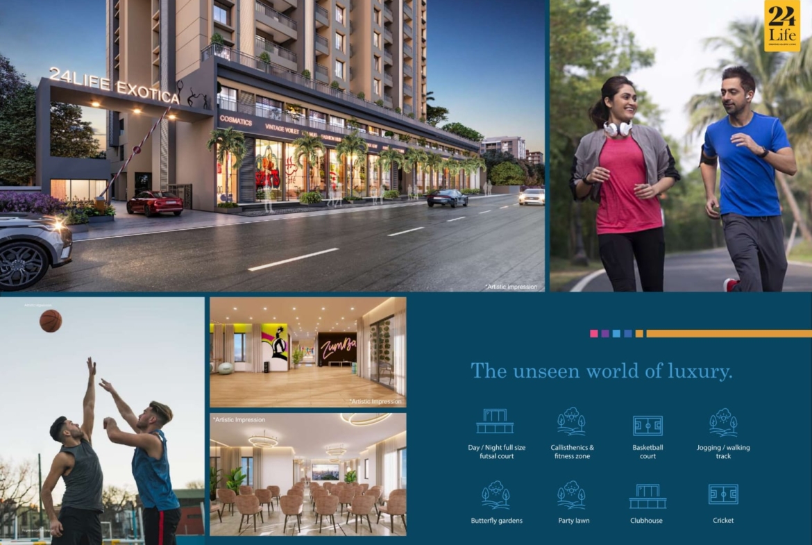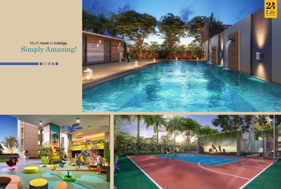 At 24Life Exotica, all residents have easy access to some of the truly desired facilities such as Gymnasium. If you are a sports lover, there are provisions meant for you such as a Basketball Court. Other facilities include Barbecue Area, provisions in the project. Kids can use the Children’s Play Area, Kid’s Pool, nearby apart from Swimming Pool, Recreation Facilities. Come home to 24Life Exotica.